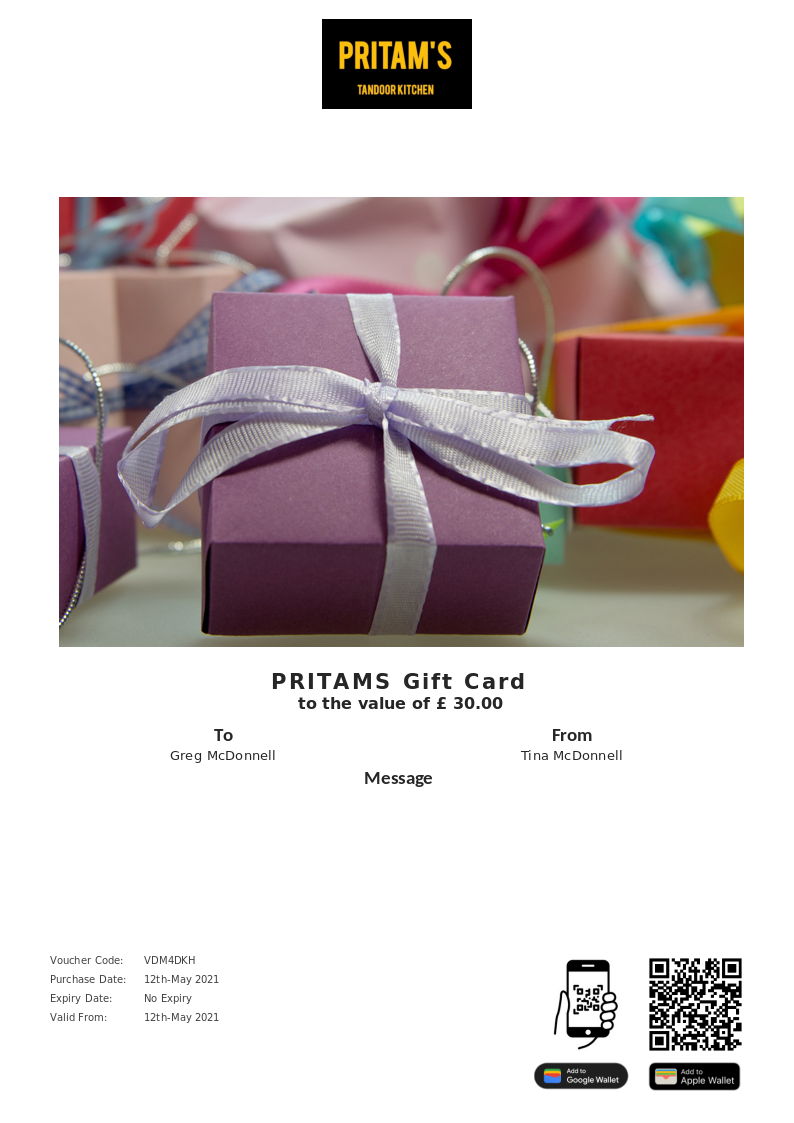 PRITAMS allows you to purchase instantly printable gift vouchers, special offers and tickets using the Voucher Connect platform.
